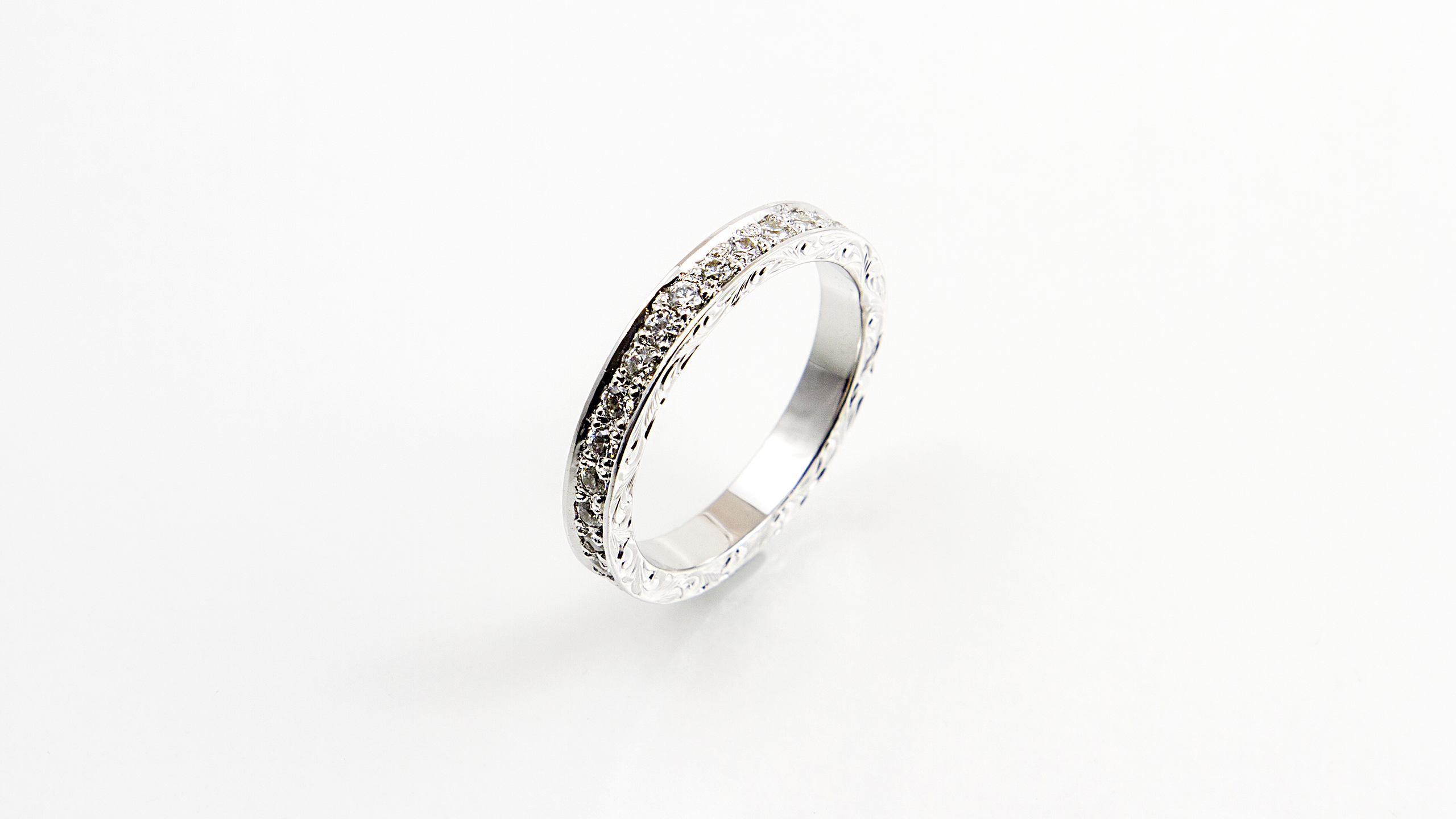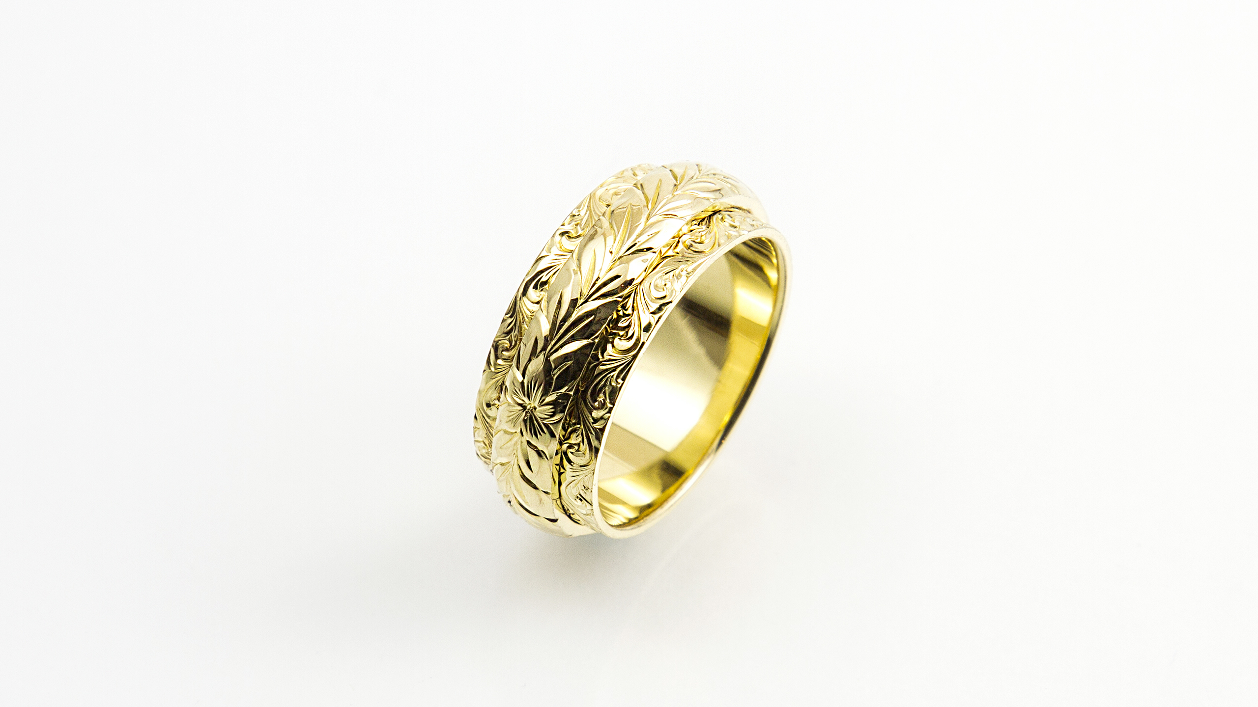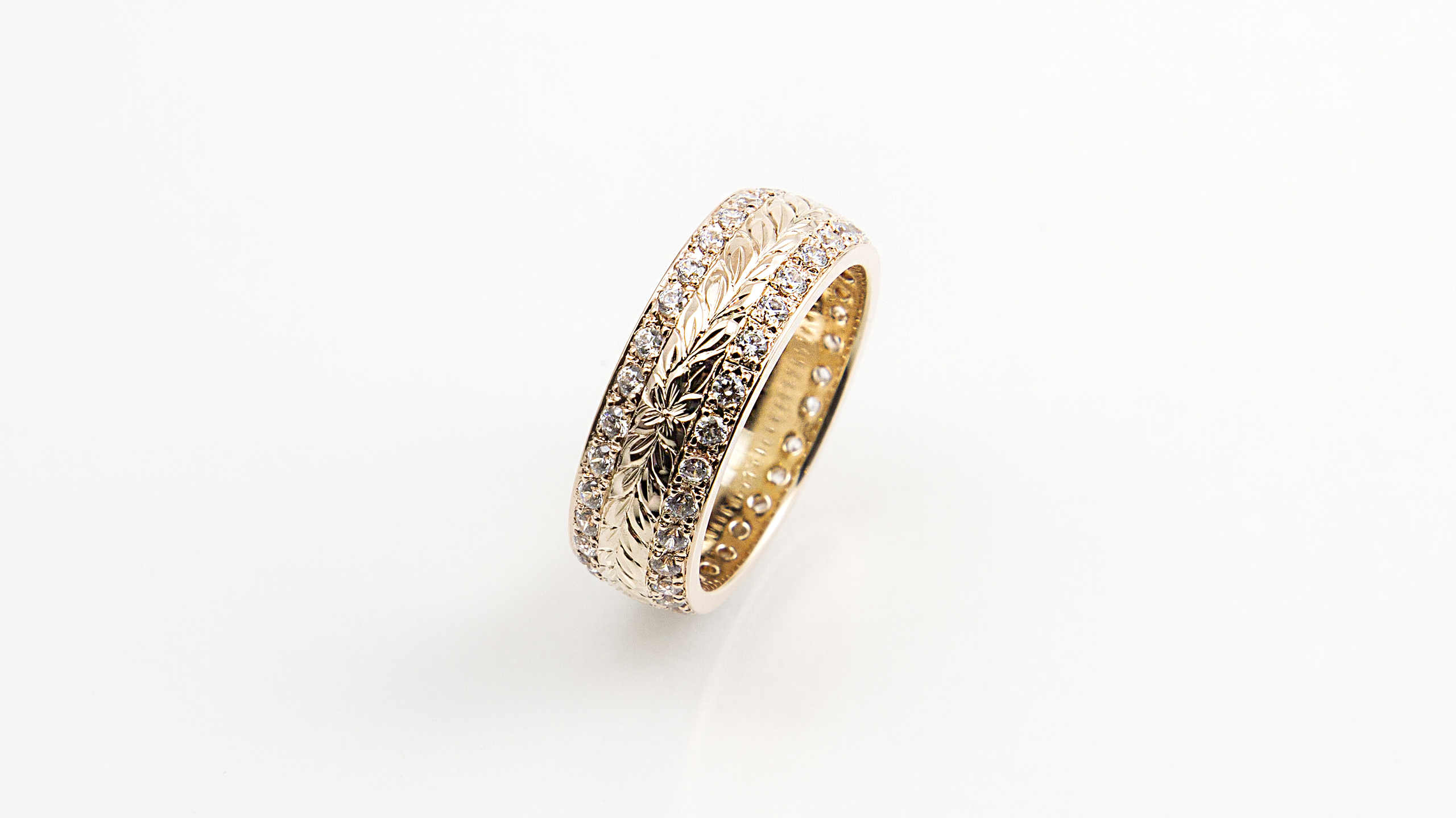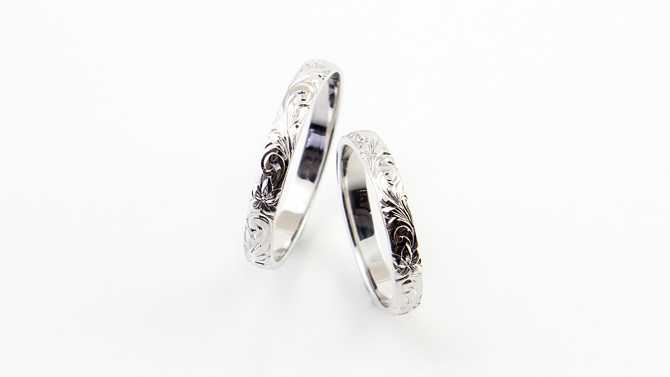 細かいオーダー1つ1つが形となって大満足。彫りがとても美しく感動した。私たちの希望どおりで、予算の範囲内でイメージぴったりのものを作って頂き、ほんとにありがとうございました。仕上りもきれいで、高品質で、大満足です。一生大切に身につけたいと思います。ありがとうございした。