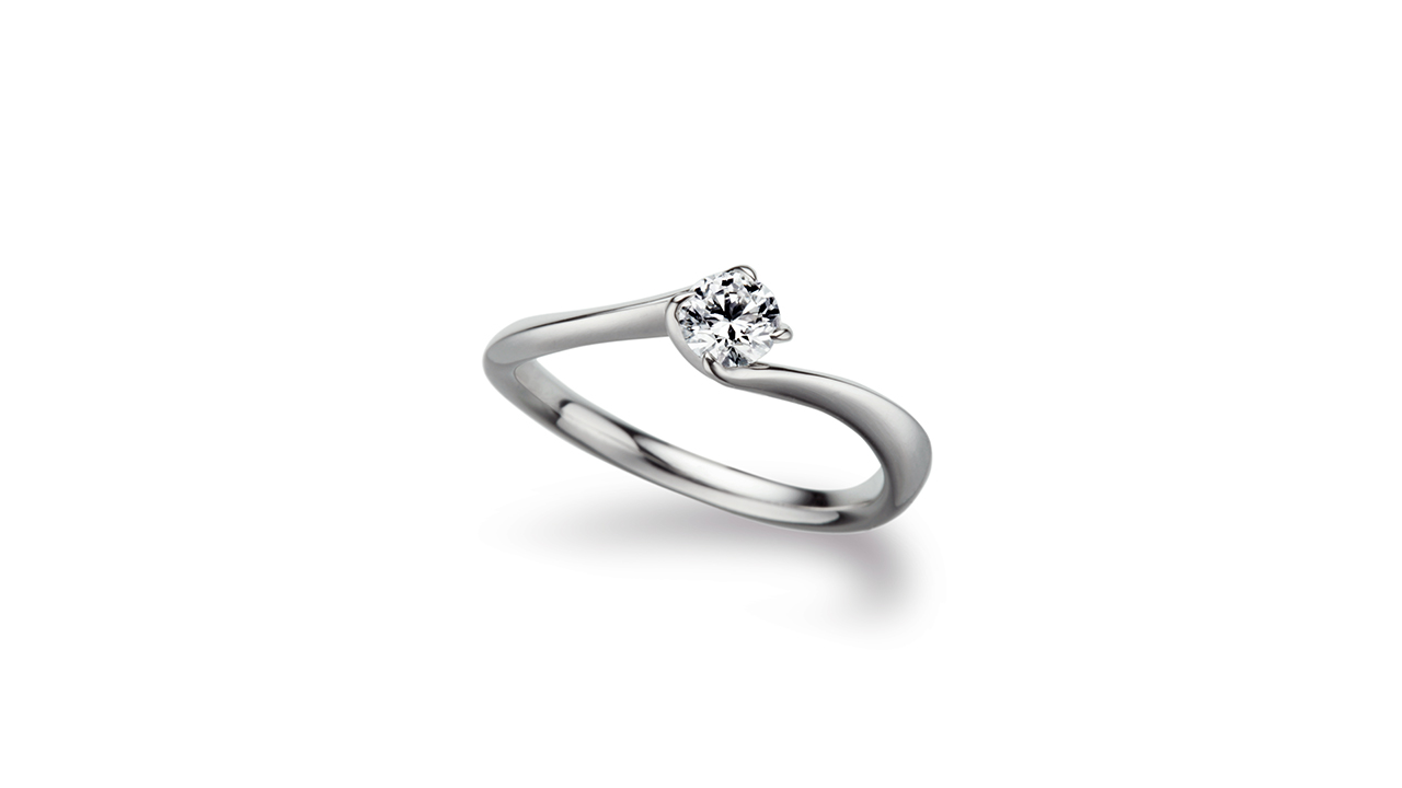 花弁を思わせるひねりを加えたダイヤモンドセッティング。巻きながら包み込む洗練されたラインが華奢な輝きを引き出す。