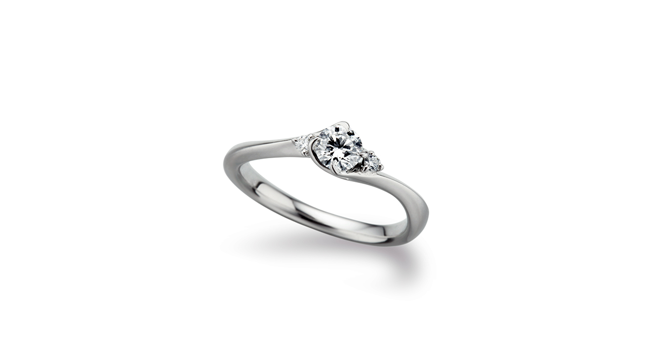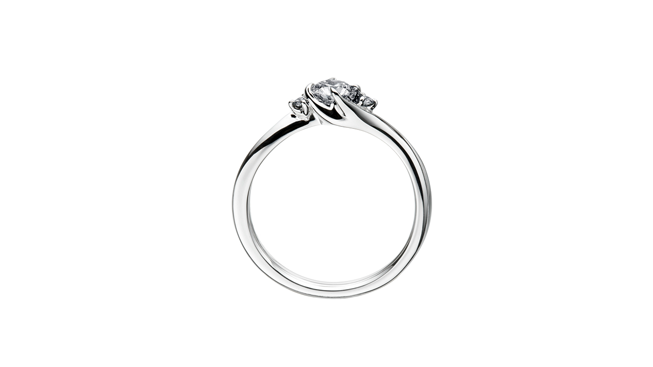花弁を思わせるひねりを加えたダイヤモンドセッティング。巻きながら包み込む洗練されたラインが華奢な輝きを引き出す。