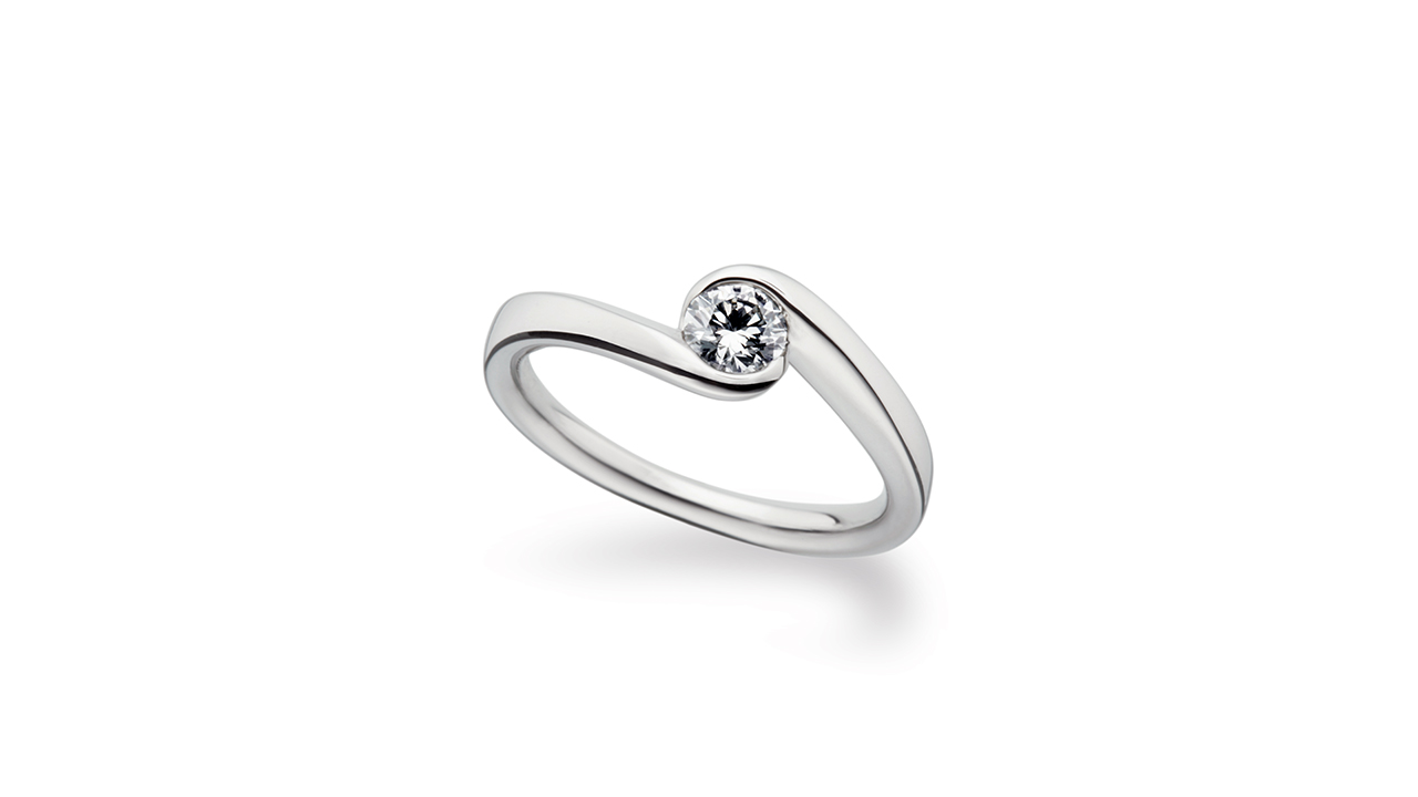 溢れるように滑らかなセッティング。ダイヤモンドの清楚なきらめきを優しく包み込む。