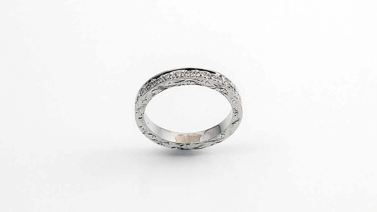 フルエタニティリング ダイヤモンド2mm 側面スクロール&リーフ