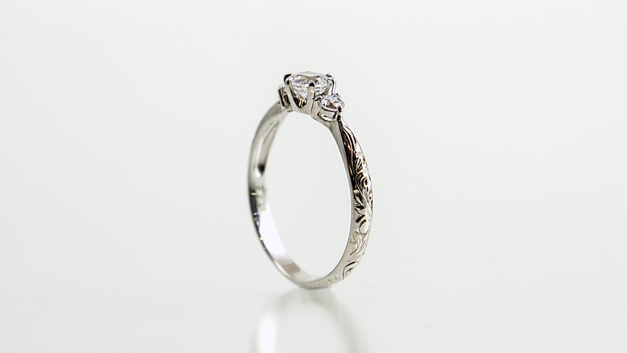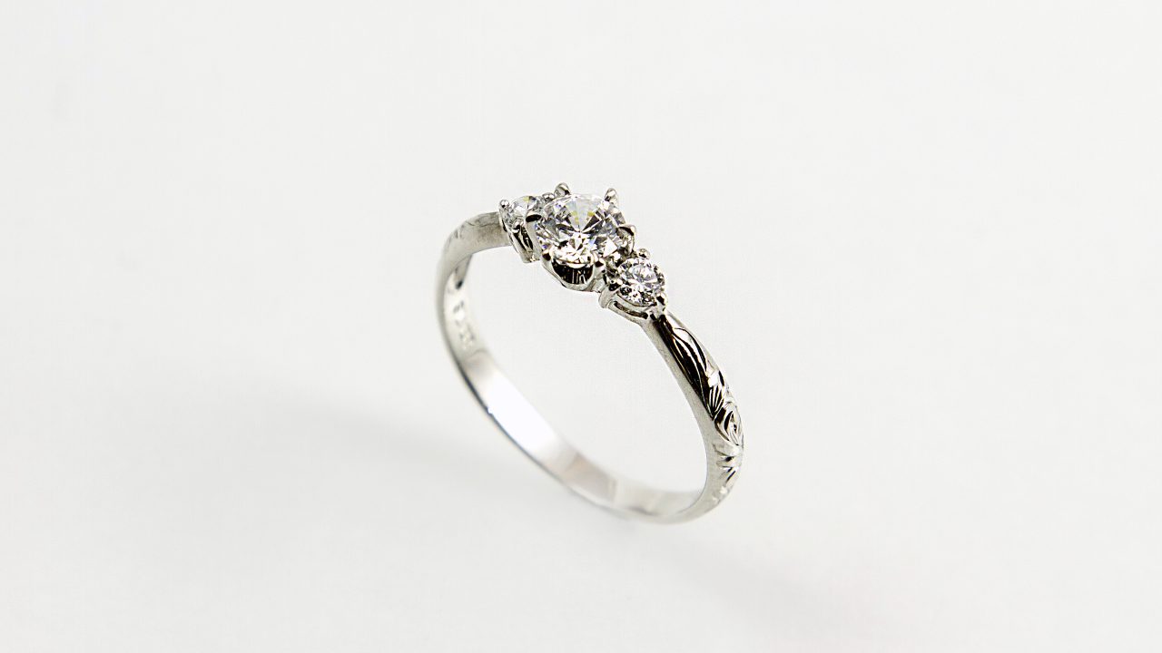 ダイヤモンドの美しさと、手彫りにより刻み込まれた