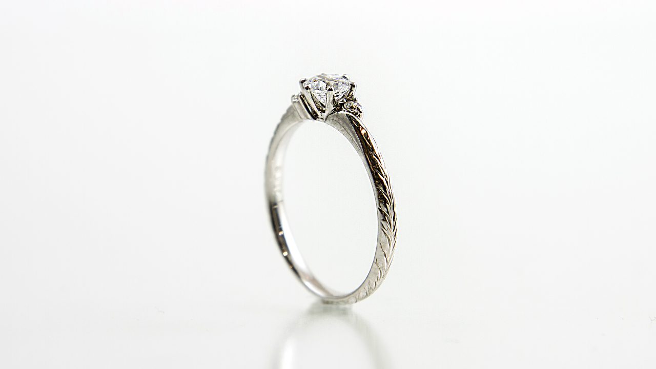 ダイヤモンドの美しさと、手彫りにより刻み込まれた