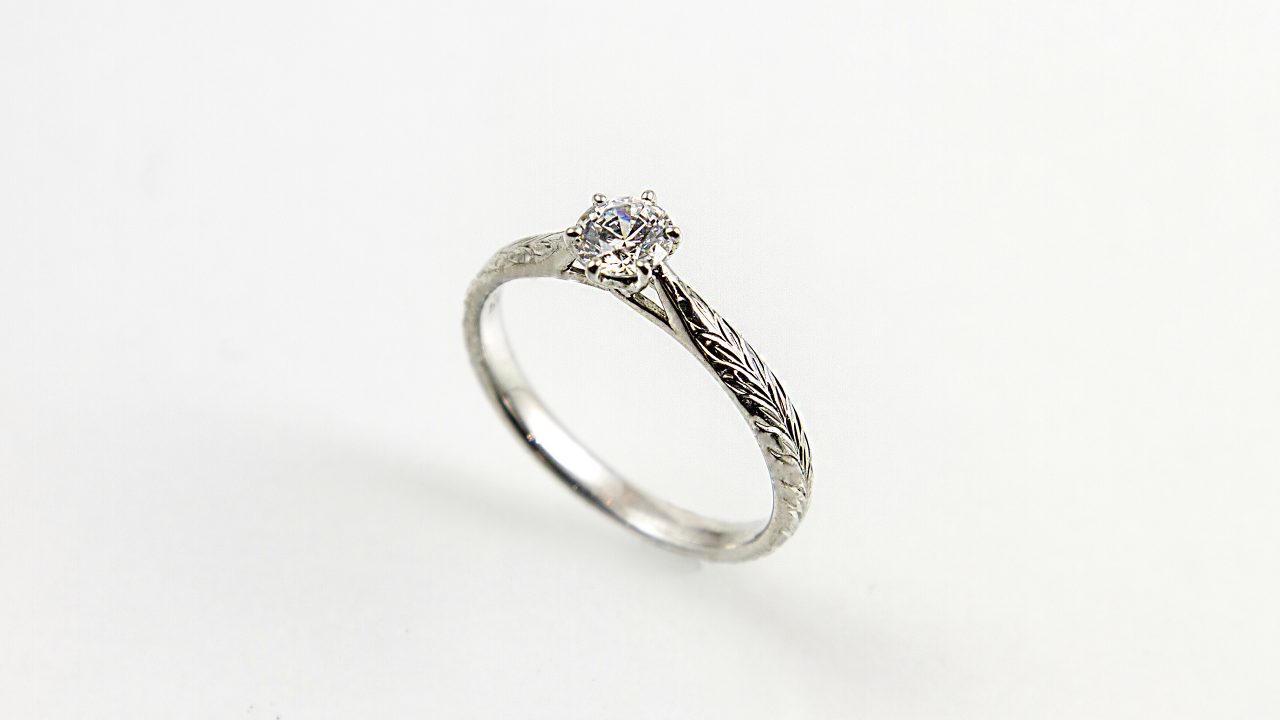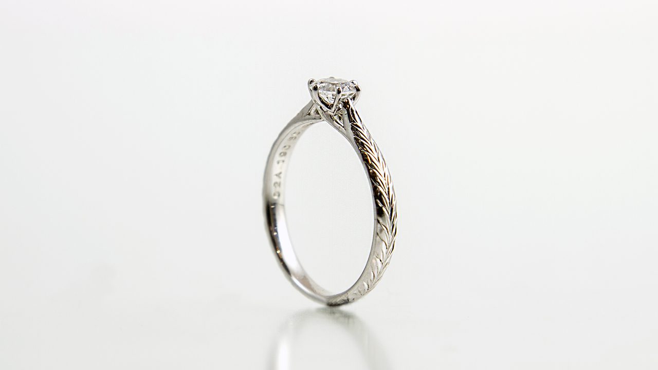 ダイヤモンドの美しさと、手彫りにより刻み込まれた