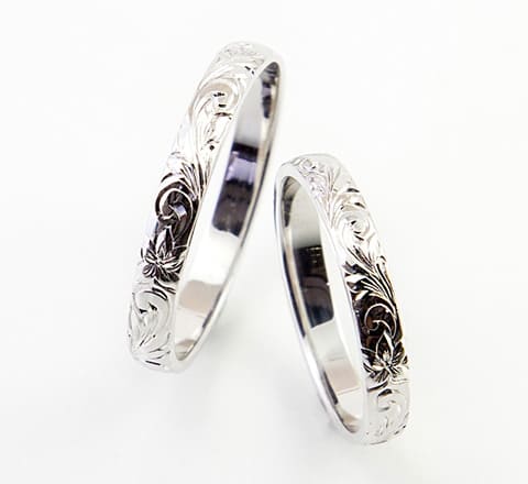 手彫りの美しいハワイアンエンゲージリング(婚約指輪)をご用意いたしました。手彫りの美しい婚約指輪をご用意いたしました。