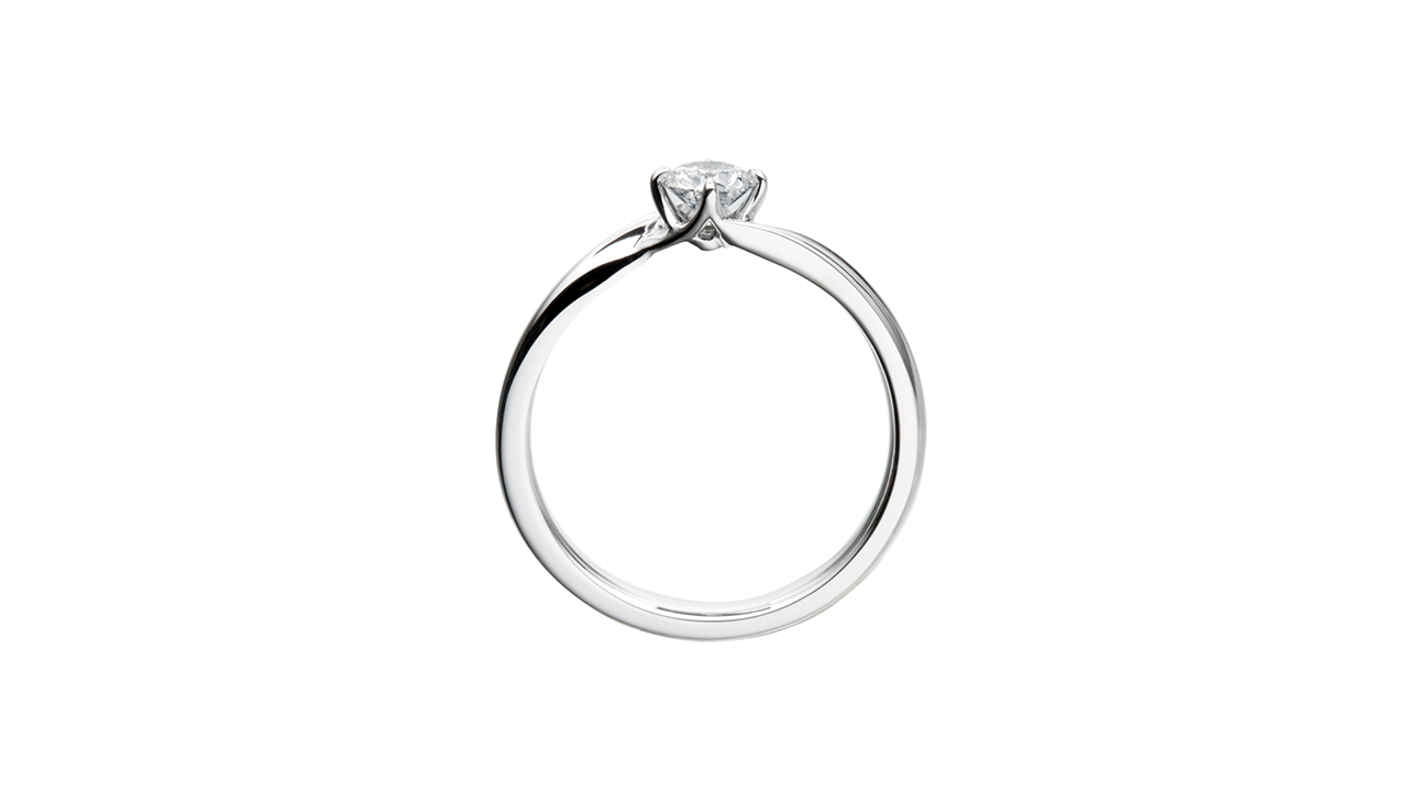 繊細なフォルムでありながらサイドから見た時、繊細なアーチを描く。シンプルなデザインはダイヤモンドの輝きをいっそう際立たせる。