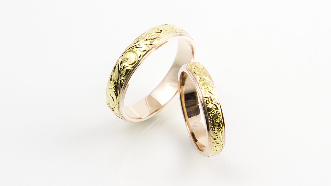 コンビ左幅5mmx4mm厚1.8mmPG×YGスクロール&リーフ 右幅4mmx3mm厚1.8mmPGxYGウィッグルスクロール