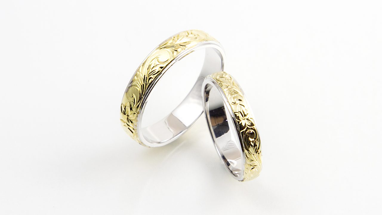 コンビ左幅5mmx4mm厚1.8mmWGxYGスクロール&リーフ 右幅4mmx3mm厚1.8mmWGxYGスクロール&リーフ