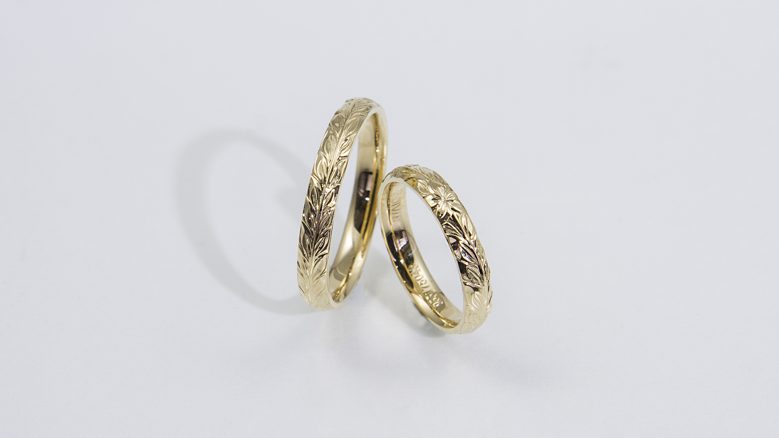 加藤様、ご婚約指輪からご結婚指輪まで、当店でオーダー下さいまして誠にありがとうございます。 旦那様はディープカットマイレのみ、奥様はプルメリアにディープカットマイレを合わせました。シンプルなデザインですが、ディープカットの躍動感や彫刻の美しさが表現出来、素敵な指輪に仕上がったと思います。 お二人の指元で何十年と輝き続けるのを思うととてもわくわくします。 メンテナンス等お気軽にお越しください。またお目に掛かれる日を楽しみにしております。
