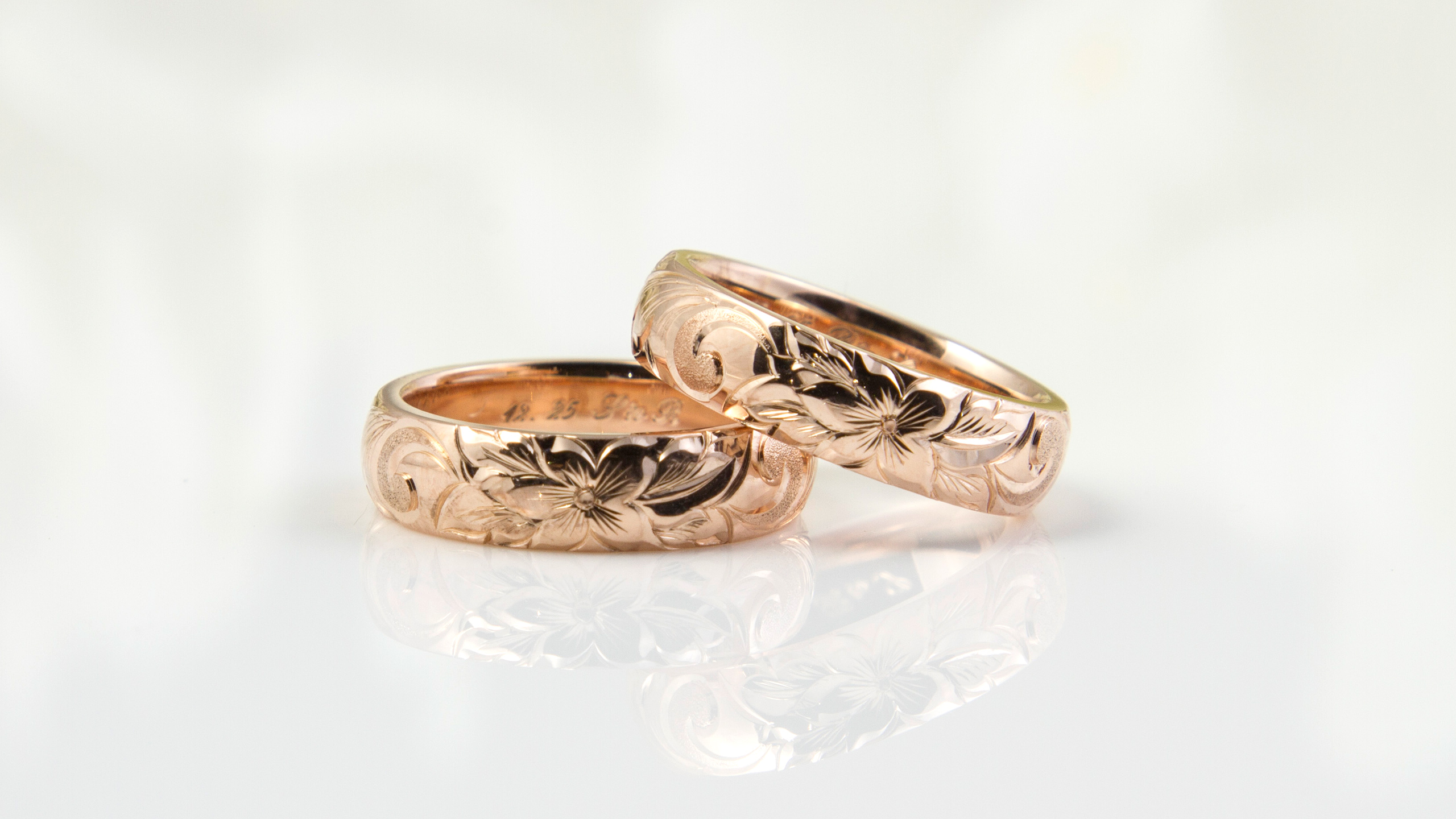 ペアリングにオーダー頂きました。 お二人だけのペアリングにする為にデザインから起こさせて頂き、オールドイングリッシュという模様のスクロール(渦巻き)部分を増やしたデザインをご提案致しました。 デザインを自分たちのオリジナルで制作してくれるのがとてもよかった、とても満足しました。とお喜び頂けました。