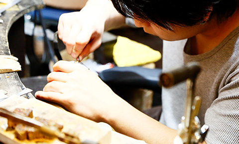 ジュエリーの彫刻は単なる装飾ではなく、「祈りを刻む行為」として捉えられています。